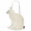 A free-standing cat-shaped tote in a sitting pose. A tote that will make a statement even when placed on the floor or sofa.