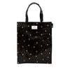 Material: Outer: Cotton, non-phthalate PVC laminated Lining: Polyester Handle: Cotton, non-phthalate PVC laminated Bottom: Velpolen Magnetic snap pockets: 1 exterior zipper pocket / 1 interior pocket Country of origin: China