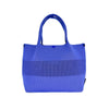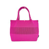トートバッグのパターンにあわせて、パーツごとに生地を編み立てていきます。